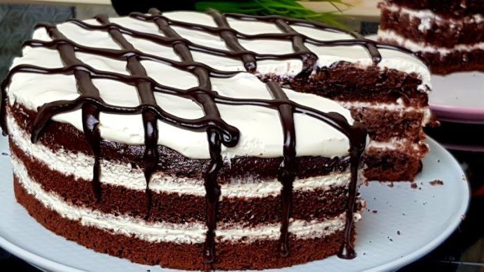 Очень вкусный, влажный и простой в приготовлении шоколадный торт со сметанным кремом. Вкусная выпечка для семейного чаепития.